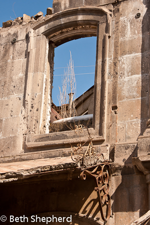 I am posting this because a part of Gyumri will always tied to my family…my daughter was born in the nearby countryside. I was taken with Gyumi’s beauty, its history, the intricate ironwork of the buildings and the spare, dramatic landscapes that surround the city, and I mourn all they lost–as a city and a people.