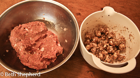 - 1 lb. very lean lamb or beef (or both) , ground fine
